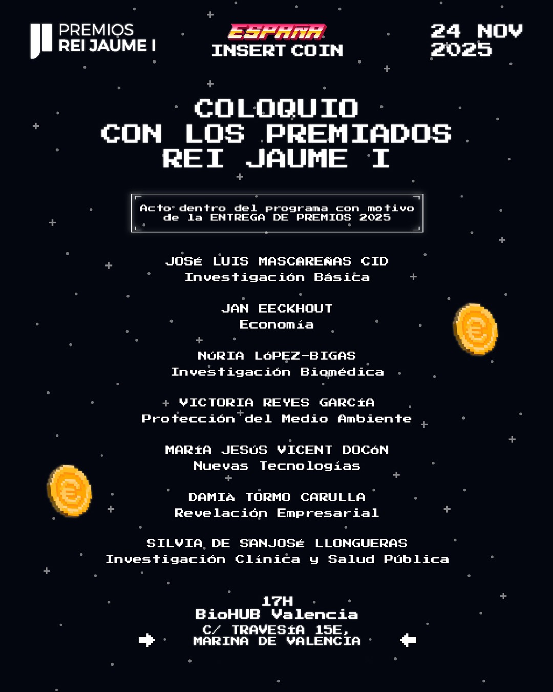 Con motivo de la celebración de los actos de entrega de los Premios Rei Jaume I de 2025, la Fundación desea reivindicar la falta de inversión en Ciencia y emprendimiento con una campaña que se ha denomiando: “España, Insert Coin”: