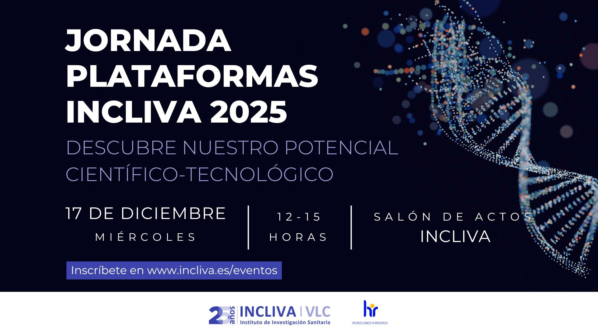 El próximo 17 de diciembre, a las 12:00 horas, INCLIVA organiza la Jornada Plataformas para dar a conocer a la comunidad investigadora el potencial, las capacidades y los servicios de las diferentes plataformas científico-tecnológicas de INCLIVA. A través de presentaciones breves y dinámicas, los asistentes podrán descubrir cómo estos recursos pueden impulsar sus proyectos y contribuir al desarrollo de una investigación más competitiva, innovadora y de excelencia. El evento finalizará con un espacio dedicado a reuniones one-to-one.