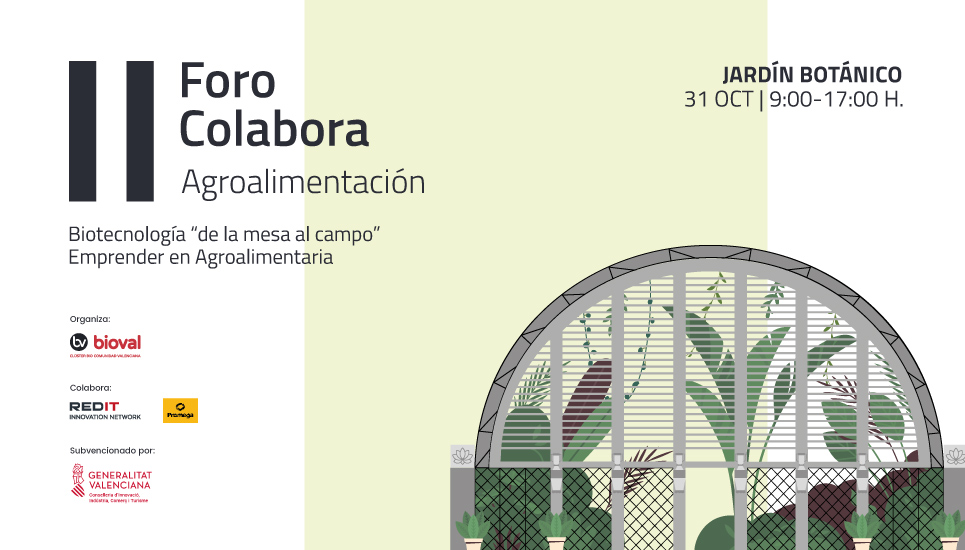 Jornada de transferencia de tecnología y conocimiento para potenciar la colaboración en I+D en el sector agroalimentario.Es un evento organizado por Bioval con la colaboración de REDIT en el marco del proyecto Bioval transfiere (Agencia Valenciana de Innovación).El objetivo de esta jornada es compartir innovaciones, líneas de trabajo y posibles retos en el ámbito de la biotecnología y con aplicación en el sector agroalimentario, entre los centros tecnológicos de la Comunidad Valenciana y las empresas y entidades del sector, para que juntos colaboren en su desarrollo y/o implementación.Para facilitar las conexiones entre los participantes, se ofrecerá la posibilidad de concertar reuniones bilaterales que tendrán lugar en la última parte de la jornada (Catálogo de participantes)