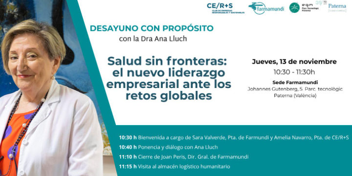 El CE/R+S Club de Empresas Responsables y Sostenibles de la Comunitat Valenciana, Farmamundi y EGMParc Tecnològic de Paterna organizan el Desayuno "Salud sin fronteras: el nuevo liderazgo empresarial ante los retos globales".