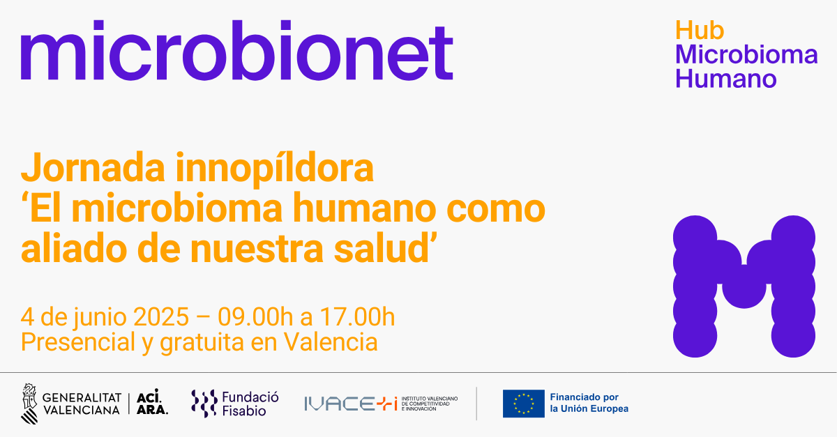La Unidad Científica de Innovación Empresarial (UCIE SALUT CV) de la Fundación Fisabio organiza la INNOPÍLDORA: "El Microbioma Humano como aliado de nuestra salud", el miércoles 4 de junio de 9:00-17:00h en la sala Ausiàs March del edificio de la Fundación Bancaja.